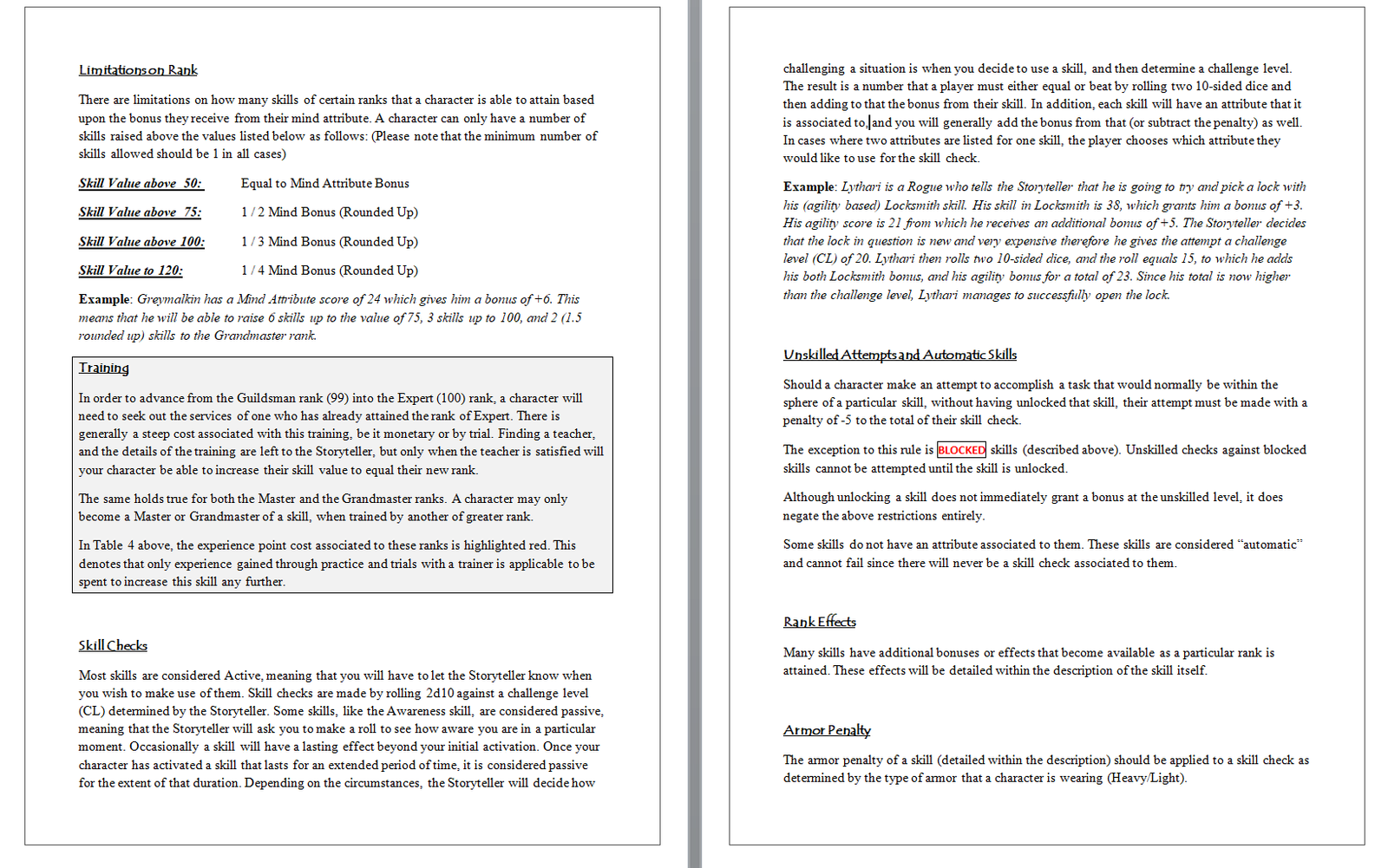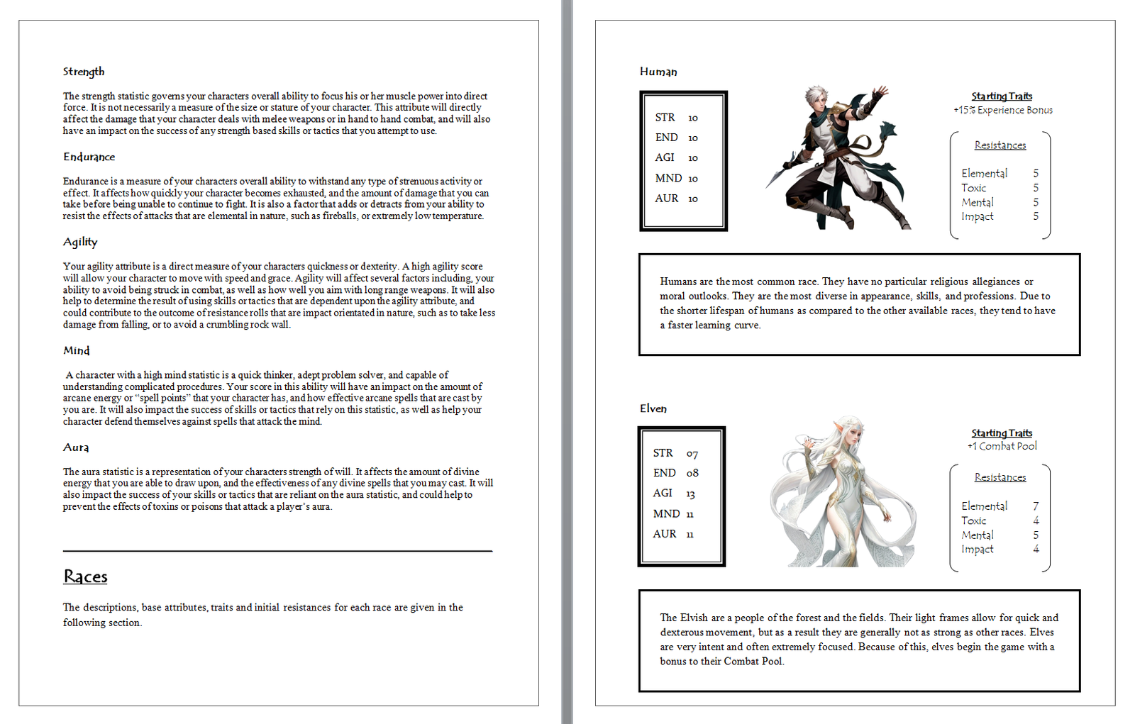 The idea behind Variance is to take many of the rules that feel time consuming and tedious from standard Dungeons & Dragons and trim them out so that players can focus more on roleplaying. I was able to streamline many systems and replace them with ones of my own design, including character development, combat, skills, magic, and more.